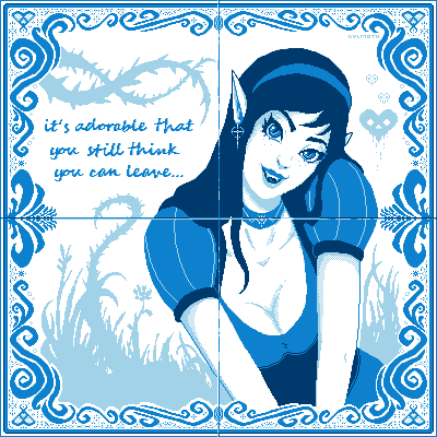 Was really fun to work on this one, even thou it took me a while to come up with a definitive idea. In fact, after a few iterations, this challenge was the perfect opportunity to experiment a bit and try to bring the aesthetic of old portuguese tiles into the world of pixel art. Midway through ended up falling in love with the palette, so expect a few more doodles with it in the near future^^